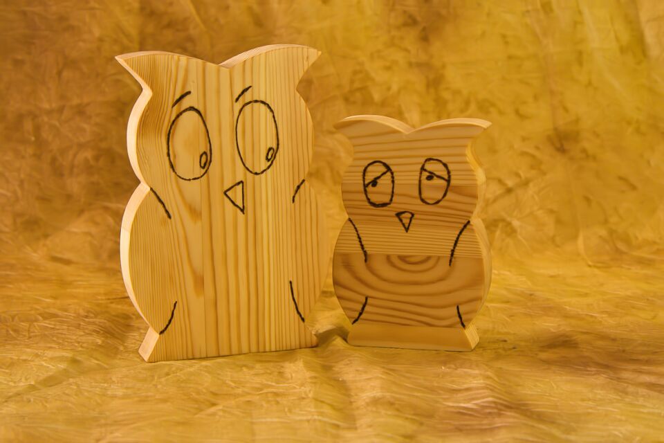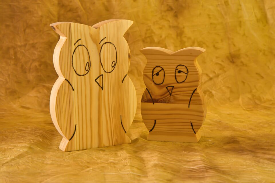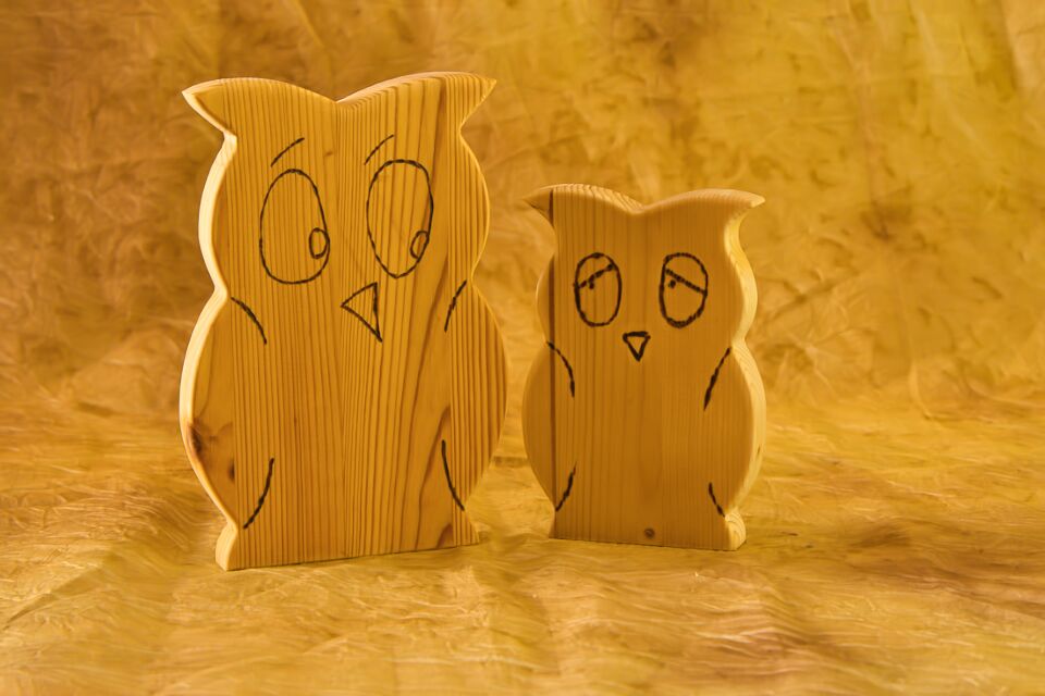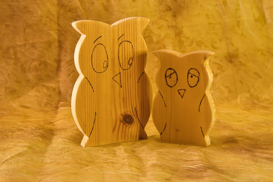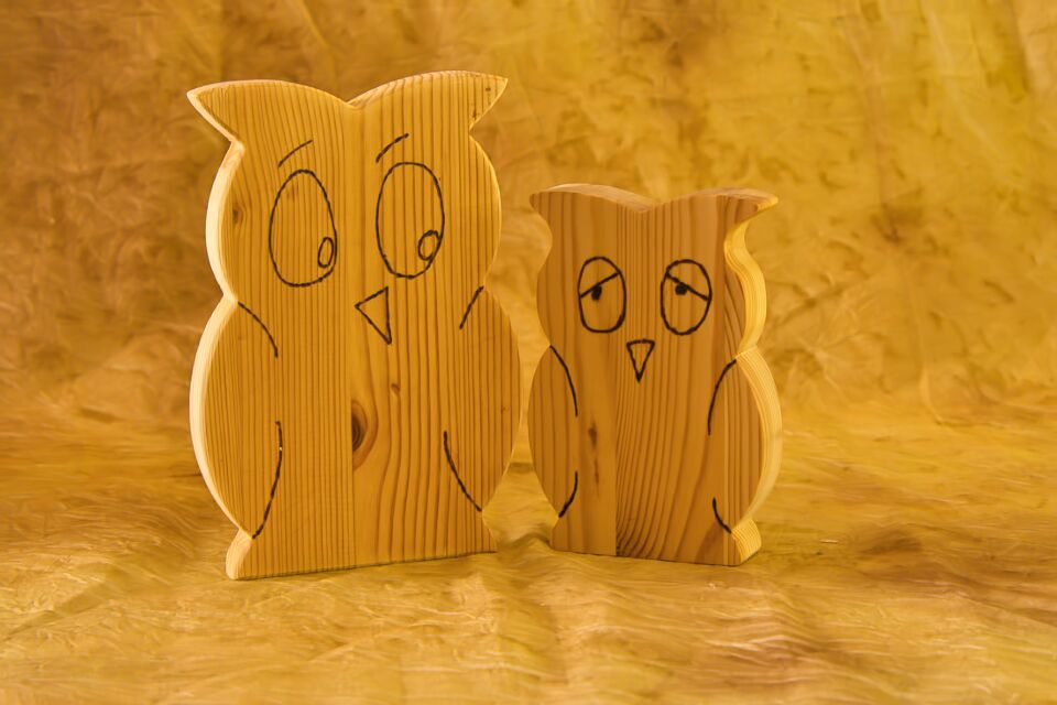Die Eulen können auch ohne den Stab auf eine ebene Fläche gestellt werden.