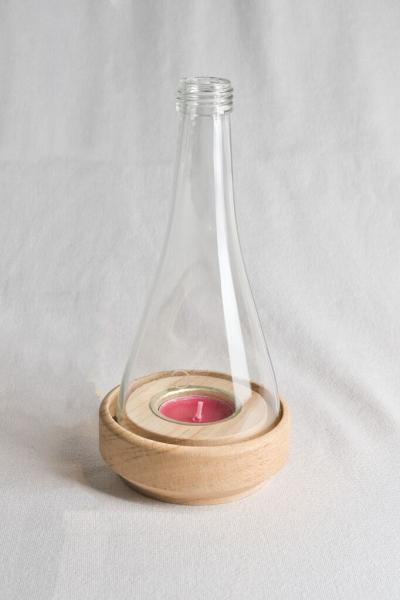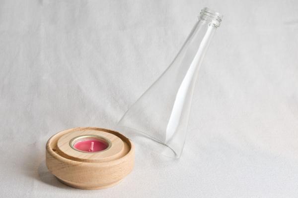 Der obere Bereich des Flaschenhalses wird beim Abbrennen des Teelichts sehr heiß, im unteren Bereich lässt sich jedoch die gläserne Haube problemlos anfassen.